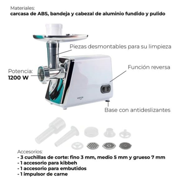 - 3 cuchillas de corte: fino de 3 mm, medio de 5 mm y grueso de 7 mm.